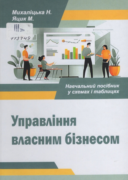 Михаліцька Н. Я. Управління власним бізнесом : навч. посіб. у схемах і табл. / Наталія Ярославівна Михаліцька, Мар'яна Романівна Яцик ; Львів. держ. ун-т внутрішніх справ. – Львів : Львів. держ. ун-т внутр. справ, 2024. – 479 с. : схеми, табл.