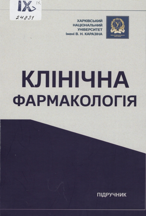 Клінічна фармакологія : підручник / Ігор Вікторович Белозьоров, Євгеній Якович Ніколенко, Кіра Віталіївна Вовк, Олена Олександрівна Гайдукова, Ганна Іванівна Квітчата ; Харків. нац. ун-т ім. В. Н. Каразіна ; за заг. ред. Ігор Вікторович Белозьоров. – Харків : ХНУ ім. В. Н. Каразіна, 2024. – 391 с.