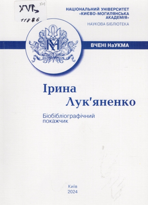 Ірина Лук'яненко : біобібліогр. покажч. / Нац. ун-т "Києво-Могилянська академія". Наук. б-ка ; уклад. Н. Г. Павлів ; автор вступ. ст. Олена К. Прімєрова. – Київ : НаУКМА, 2024. – 64 с. : фотоіл., портр. – (Вчені НаУКМА).