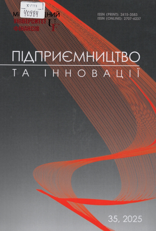 Підприємництво та інновації : наук. журн. з питань економіки та бізнесу / Засновник ПВНЗ "Міжнародний університет фінансів" ; гол. ред. Л. Г. Смоляр. – Київ : ПВНЗ "Міжнар. ун-т фінансів", Одеса; Київ : Гельветика, 2025. – Вип. 35. – 138 с.