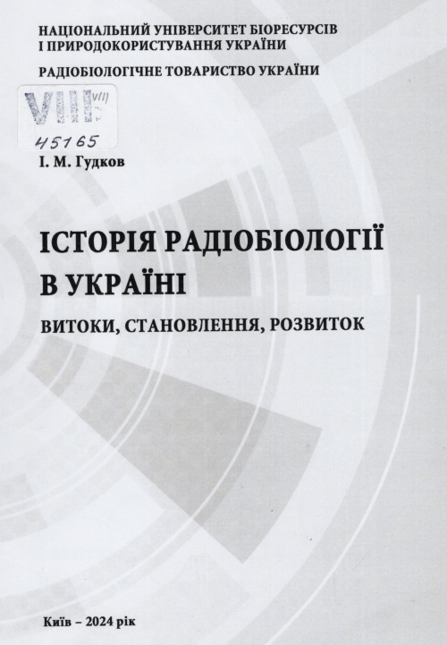 Гудков І. М. Історія радіобіології в Україні : витоки, становлення, розвиток : монографія / Ігор Миколайович Гудков ; Нац. ун-т біоресурсів і природокористування України, Радіобіол. т-во України ; за наук. ред. В. В. Талько, В. О. Кашпарова. – Київ : НУБіП України, 2024. – 112 с. : портр., табл.
