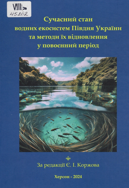 Сучасний стан водних екосистем Півдня України та методи їх відновлення у повоєнний період : [зб. наук. праць] / Є. І. Коржов, В. В. Коваль, В. О. Демченко, С. В. Стадніченко, О. М. Куракина ; Херсон. держ. аграр.-екон. ун-т ; за ред. Є. І. Коржов. – Київ : Франко Пак, 2024. – 210 с. : іл., табл.