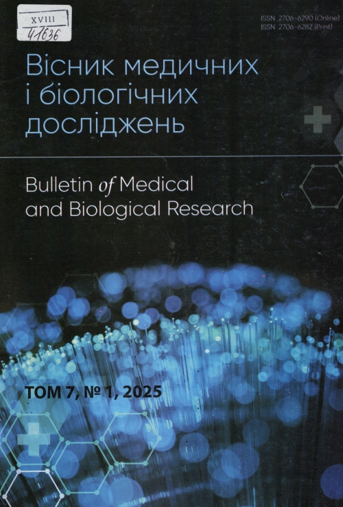 Вісник медичних і біологічних досліджень = Bulletin of medical and Biological Research : наук.-практ. журн. / Засновник Терноп. нац. мед. ун-т ім. І. Я. Горбачевського МОЗ України ; гол. ред. Марія Марущак. – Тернопіль : Укрмедкнига, 2025. – Т. 7, № 1. – 90 с.