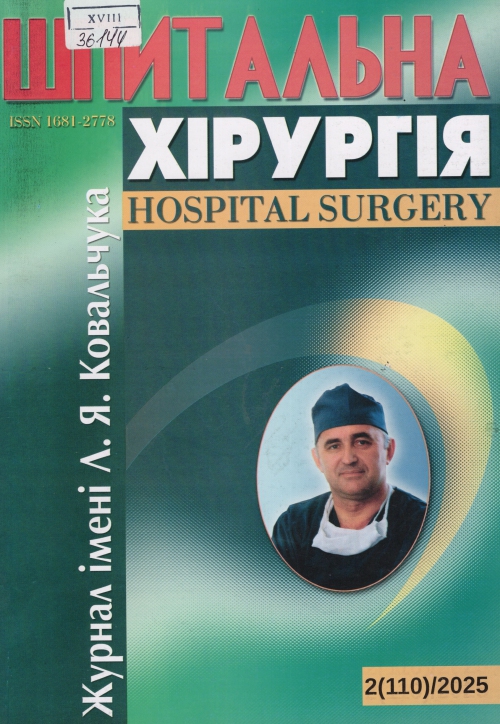 Шпитальна хірургія. Журнал імені Л. Я. Ковальчука = Hospital surgery. Journal by L. Ya. Kovalchuk = Госпитальная хирургия. Журнал имени Л. А. Ковальчука : журн. / Засновник ДВНЗ "Терноп. держ. мед. ун-т ім. І. Я. Горбачевського МОЗ України", Нац. мед. акад. післядиплом. освіти ім. П. Л. Шупика ; гол. ред. І. Я. Дзюбановський. – Тернопіль : ТДМУ, 2025. – № 2 (110). – 124 с.