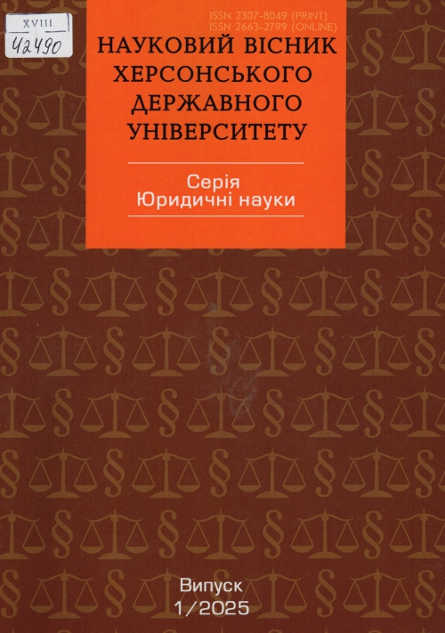 Науковий вісник Херсонського державного університету. Серія: Юридичні науки : зб. наук. пр. / Засновник Херсон. держ. ун-т ; гол. ред. Василь Миколайович Стратонов. – Херсон : ХДУ, Одеса : Гельветика, 2025. – Вип. 1. – 53 с.