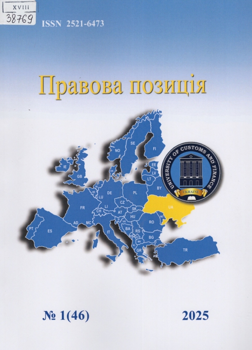 Правова позиція : наук. журн. / Засновник Університет митної справи та фінансів ; гол. ред. Д. В. Приймаченко. – Дніпро : Ун-т митної справи та фінансів, Одеса : Гельветика; Дніпро : Ун-т митної справи та фінансів, 2025. – № 1 (46). – 86 с.