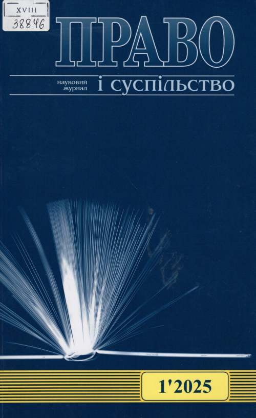 Право і суспільство : наук. журн. / Засновник ВНПЗ "Дніпров. гуманіт. ун-т", Фонд юрид. науки Академіка права В. В. Сташиса, Нац. акад. внутрішніх справ ; гол. ред. М. В. Корнієнко. – Дніпро : ДГУ, Одеса : Гельветика; Дніпро : ДГУ, 2025. – № 1. – 423 с.
