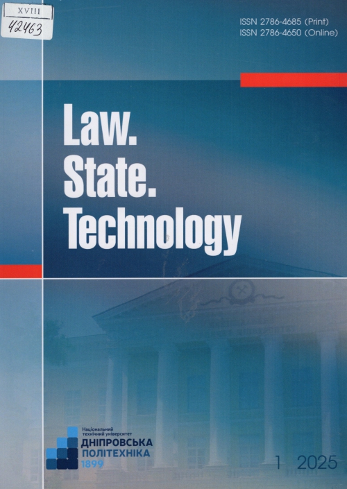 Law. State. Technology : наук. журн. / Засновник Нац. техн. ун-т "Дніпровська політехніка", Видавничий дім "Гельветика" ; гол. ред. Юлія Олександрівна Легеза. – Дніпро : Нац. тех. ун-т "Дніпровська політехніка" ; Одеса : Гельветика, Одеса : Гельветика, 2025. – Вип. 1. – 71 с.