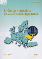 Публічне управління та митне адміністрування : наук. зб. / Засновник Університет митної справи та фінансів ; гол. ред. Л. М. Івашова. – Дніпро : Ун-т митної справи та фінансів, Одеса : Гельветика; Дніпро : Ун-т митної справи та фінансів, 2025. – № 2 (45). – 72 с.