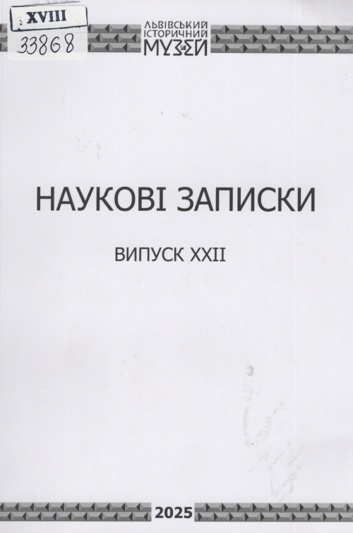 Наукові записки [Львівського історичного музею] : наук. видання / Засновник Львівський історичний музей ; упоряд. Олена Роман, Ольга Перелигіна, Ірина Полянська. – Львів : Сорока Т. Б., 2025. – Вип. 22. – 516 с.