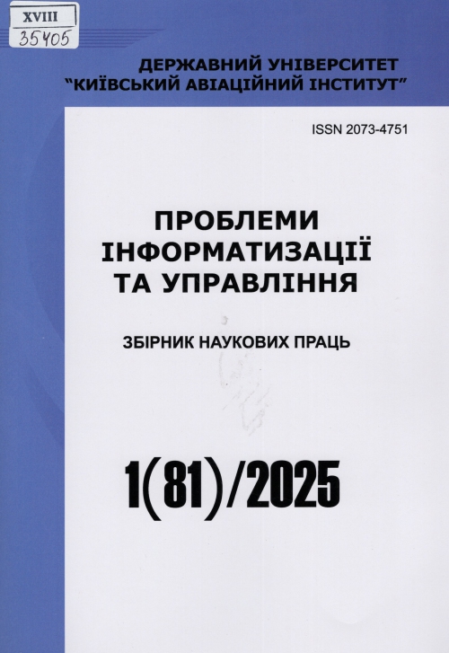Проблеми інформатизації та управління : зб. наук. пр. / Засновник Нац. авіаційний ун-т (м. Київ, Україна), Нац. авіац. ун-т, Ф-т кібербезпеки, комп'ютерної та програм. Інженерії ; гол. ред. І. А. Жуков. – Київ : НАУ, 2025. – Вип. 1 (81). – 149 с.