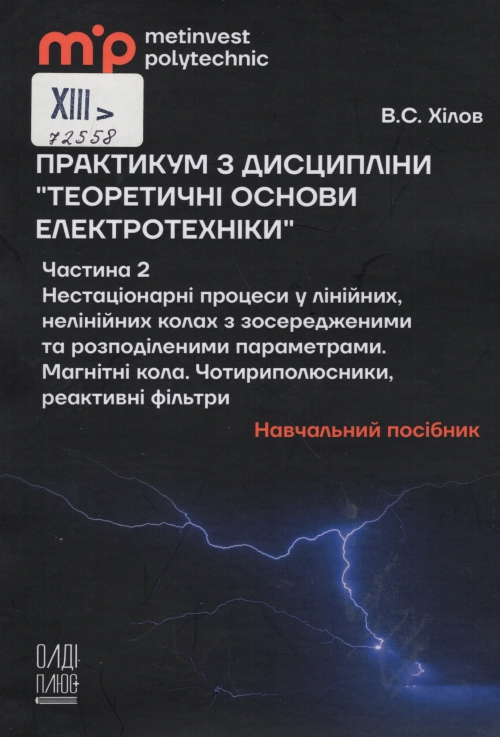 Хілов В. С. Практикум з дисципліни "Теоретичні основи електротехніки : навч. посіб. : у 2 ч. / Віктор Сергійович Хілов ; ТОВ "Техн. ун-т "Метінвест політехніка". – Одеса : Олді+, 2024