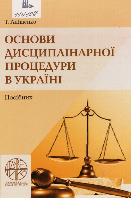 Аніщенко Т. С. Основи дисциплінарної процедури в Україні : посібник / Тетяна Сергіївна Аніщенко. – Одеса : Гельветика, 2024. – 190 с.