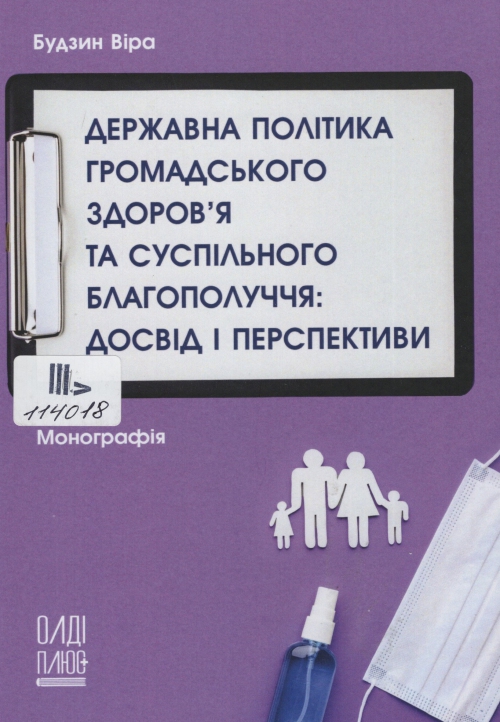 Будзин В. Р. Державна політика громадського здоров'я та суспільного благополуччя: досвід і перспективи : монографія / Віра Романівна Будзин ; Причорномор. наук.-досл. ін-т економіки та інновацій. – Одеса : Олді+, 2024. – 311 с. : табл.
