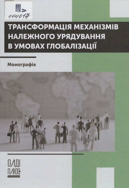 Трансформація механізмів належного урядування в умовах глобалізації : монографія / Тетяна Валентинівна Бєльська, Надія Василівна Дацій, Володимир Гнатович Горник, Олена Леонідівна Євмєшкіна, Сергій Васильович Сімак ; Тавр. нац. ун-т ім. В. І. Вернадського. – Одеса : Олді+, 2024. – 288 с. : рис., табл.