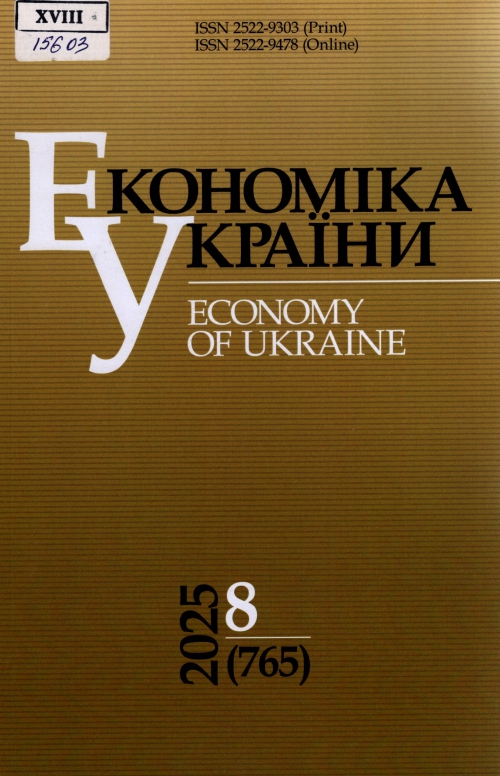 Економіка України = Economy of Ukraine : наук. фах. журн. / Засновник ДУ "Ін-т економіки та прогнозування НАН України" ; гол. ред. В. М. Геєць. – Київ : Ред. журналу "Економіка України", 2025. – № 8 (765). – 92 с.