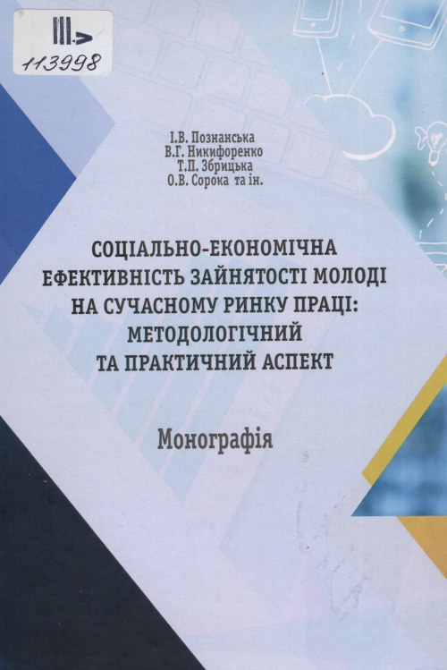 Соціально-економічна ефективність зайнятості молоді на сучасному ринку праці: методологічний та практичний аспект : монографія / Інна Володимирівна Познанська, Валерій Григорович Никифоренко, Тетяна Петрівна Збрицька, О. В. Сорока, О. М. Петровська ; Одес. нац. економ. ун-т ; за заг. ред. Інна Володимирівна Познанська. – Одеса : Екологія, 2024. – 234 с. : рис., табл.