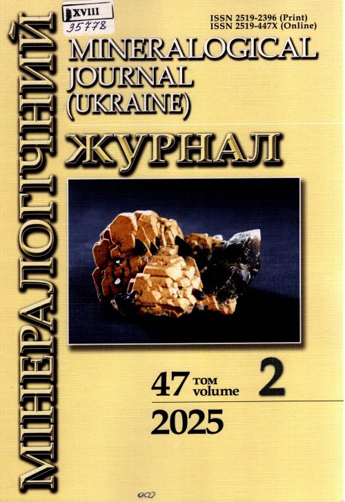 Мінералогічний журнал = Mineralogical journal (Ukraine) : наук.-теорет. журн. / Засновник НАН України. Ін-т геохімії, мінералогії та рудоутворення ім. М. П. Семененка ; гол. ред. О. М. Пономаренко. – Київ : Академперіодика, 2025. – Т. 47, № 2. – 135 с.