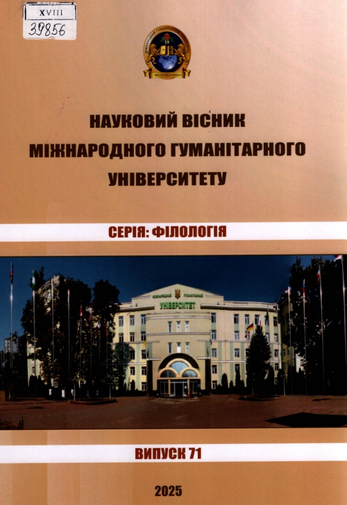 Науковий вісник Міжнародного гуманітарного університету. Серія: Філологія : зб. наук. пр. / Засновник Міжнар. гуманіт. ун-т ; гол. ред. В. Я. Мізецька, М. В. Мамич. – Одеса : Гельветика, 2025. – Вип. 71. – 301 с.