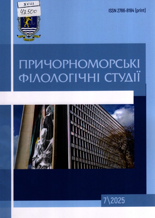 Причорноморські філологічні студії : наук. журн. / Засновник Одес. нац. морський ун-т ; гол. ред. Вікторія Юріївна Сікорська. – Одеса : Гельветика : ОНМУ, Одеса : Гельветика, 2025. – Вип. 7. – 129 с.