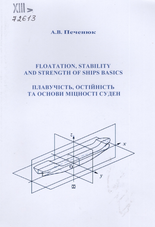 Печенюк А. В. Плавучість, остійність та основи міцності суден = Floatation, stability and strength of ships basics / Андрій Володимирович Печенюк ; Нац. ун-т "Одеська морська академія" (НУ "ОМА"). – Одеса : НУ "ОМА", 2025. – 107 с. : іл., табл., схеми.