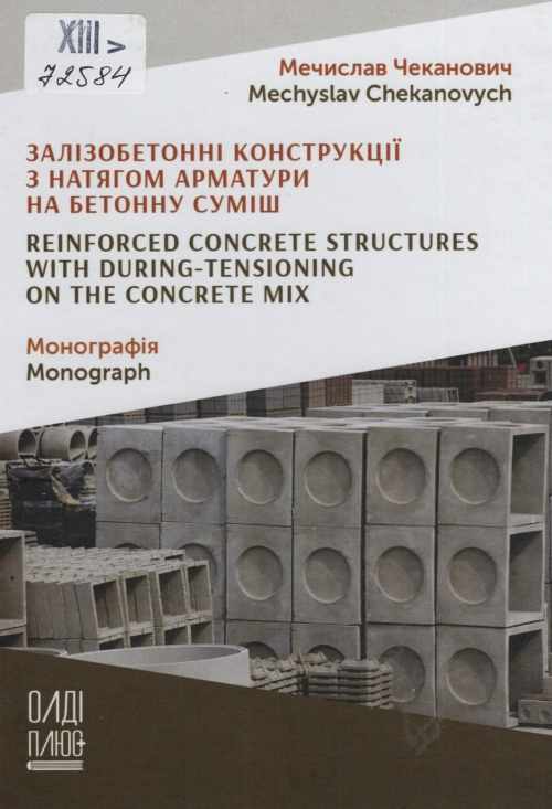 Чеканович М. Г. Залізобетонні конструкції з натягом арматури на бетонну суміш : монографія / Мечислав Геннадійович Чеканович ; Херсон. держ. аграр.-екон. ун-т. – Одеса : Олді+, 2024. – Reinforced concrete structures with during-tensioning on the concrete mix.