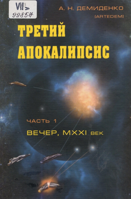 Демиденко А. Н. Третий апокалипсис : научная, социальная и боевая остросюжетная фантастика, антиутопия, общественно-политическая трагедия и сатира : в 2 ч. / А. Н. Демиденко (Artedem). – Одесса : Экология, 2024 .