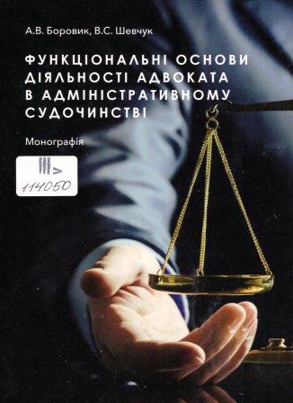 Боровик А. В. Функціональні основи діяльності адвоката в адміністративному судочинстві : монографія / Андрій Володимирович Боровик, Віктор Сергійович Шевчук ; Науково-дослідний ін-т публічного права. – Одеса : Юридика, 2024. – 174 с.