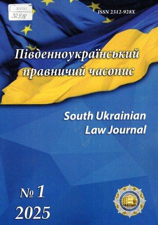 Південноукраїнський правничий часопис = SouthUkrainianlawjournal : наук. журн. : щоквартальник / Засновник Одес. держ. ун-т внутрішніх справ ; гол. ред. Д. В. Швець. – Одеса : Одес. держ. ун-т внутр. справ, 2025. – № 1. – 120 с.