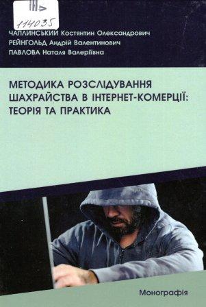 Чаплинський К. О. Методика розслідування шахрайства в інтернет-комерції: теорія та практика : монографія / Костянтин Олександрович Чаплинський, Андрій Валентинович Рейнгольд, Наталя Валеріївна Павлова ; Дніпропетр. держ. ун-т внутріш. справ. – Одеса : Юридика, 2024. – 240 с. : іл., табл.