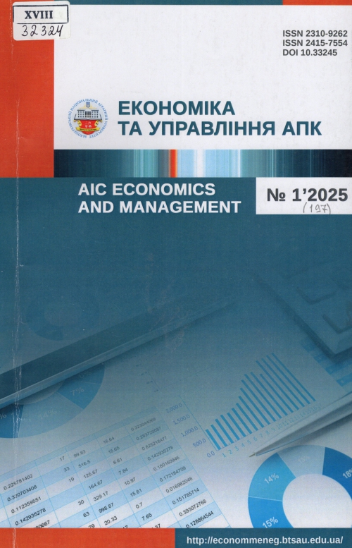 Економіка та управління АПК = AIC EconomicsandManagement : зб. наук. пр. / Засновник Білоцерків. нац. аграр. ун-т ; гол. ред. О. М. Варченко. – Біла Церква : БНАУ, 2025. – № 1 (197). – 204 с.