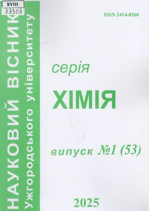 Науковий вісник Ужгородського університету. Серія: Хімія : зб. наук. пр. / Засновник ДВНЗ "Ужгород. нац. ун-т" ; гол. ред. І. Є. Барчій. – Ужгород : ДВНЗ "УжНУ", 2025. – Вип. 1 (53). – 82 с.