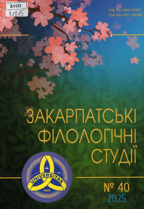 Закарпатські філологічні студії : журн. : наук. вид. / Засновник ДВНЗ "Ужгород. нац. ун-т" ; гол. ред. Іван Миколайович Зимомря. – Ужгород : Видавничий дім "Гельветика", Одеса : Гельветика, 2025. – Вип. 40, т. 2. – 250 с.