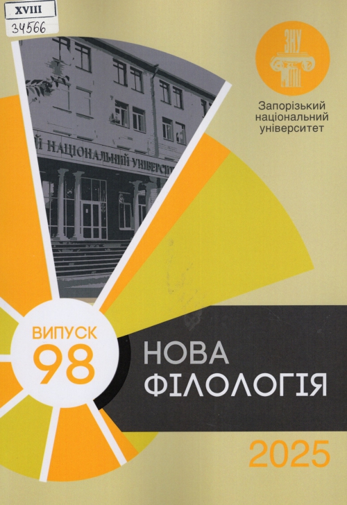 Нова філологія : зб. наук. пр. / Засновник Запоріз. нац. ун-т ; гол. ред. Г. І. Приходько. – Запоріжжя : ЗДУ, Одеса; Запоріжжя : Гельветика, 2025. – № 98. – 212 с.