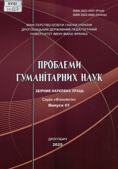 Проблеми гуманітарних наук : збірник наукових праць Дрогобицького державного педагогічного університету імені Івана Франка / Засновник Дрогоб. держ. пед. ун-т ім. І. Франка ; гол. ред. Олександр Анатолійович Ткаченко. – Дрогобич : Вид. від. ДДПУ ім. Івана Франка, Одеса; Дрогобич : Гельветика, 2025. – Вип. 61: Сер.: Філологія. – 187 с.