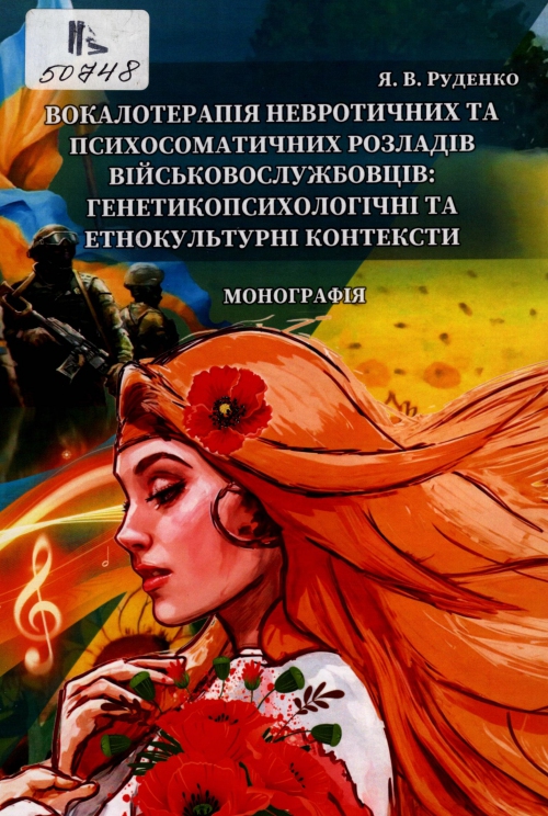 Руденко Я. В. Вокалотерапія невротичних та психосоматичних розладів військовослужбовців: генетикопсихологічні та етнокультурні контексти : монографія / Ярослава Василівна Руденко. – Київ : Вид-во Людмила, 2024. – 291 с.