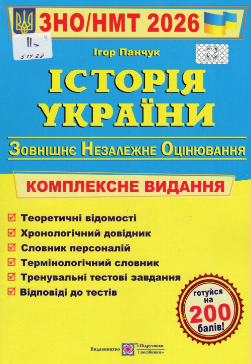 Панчук І. І. Історія України : комплексна підготовка до зовнішнього незалежного оцінювання і державної підсумкової атестації : за чинною прогр. ЗНО / Ігор Іванович Панчук.– Тернопіль : Підручники і посібники, 2025.– 463 с. : іл., портр.– (ЗНО/НМТ. 2026) (Готуйся на 200 балів!).