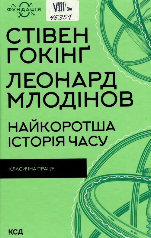 Гокінґ Стівен. Найкоротша історія часу : класична праця : пер. с англ. / Стівен Гокінґ, Леонард Млодінов ; пер. Ігор Андрущенко. – Харків : Книжковий Клуб "Клуб Сімейного Дозвілля", 2021. – 159,[1] с. : кольор. іл. – (Фундація).