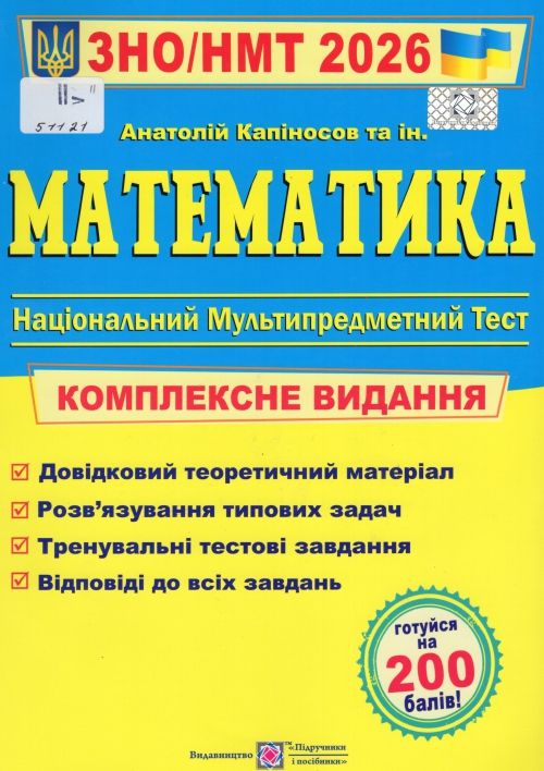 Математика : комплексна підготовка до ЗНО (НМТ) : за чинною прогр. ЗНО / Уклад. Анатолій Миколайович Капіносов, Галина Володимирівна Гап'юк, Ярослав Тадейович Гринчишин. – Тернопіль : Підручники і посібники, 2025. – 447 с. – (ЗНО/НМТ. 2026) (Національний мультипредметний тест. 2026) (Готуйся на 200 балів!).