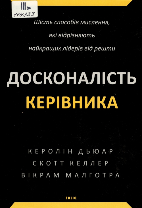 Дьюар Керолін. Досконалість керівника : шість способів мислення, які відрізняють найкращих лідерів від решти : пер. с англ. / Керолін Дьюар, Скотт Келлер, Вікрам Малготра ; пер. О. Туркало. – Харків : Фоліо, 2024. – 350, [1] с. : іл., табл. – (Шедеври нон-фікшн).