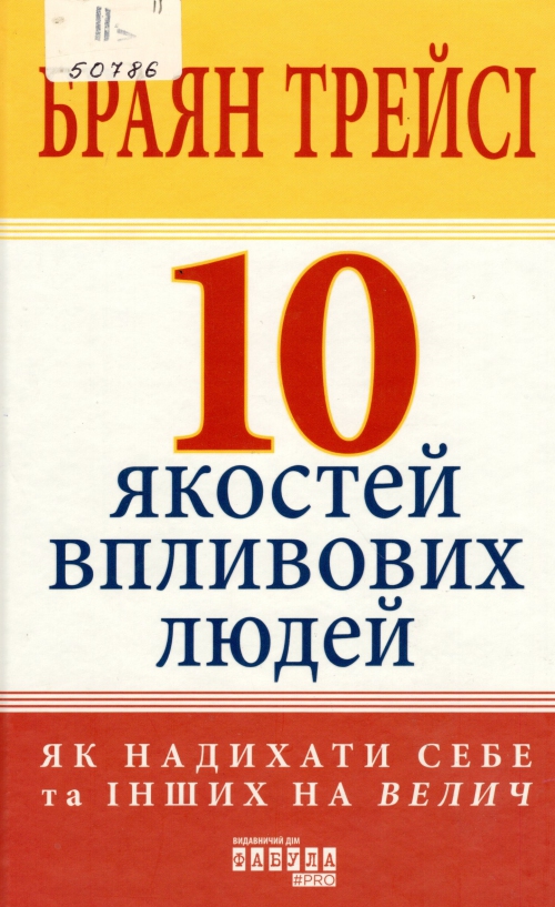 Трейсі Б. 10 якостей впливових людей : як надихати себе та інших на велич : пер. с англ. / Брайан Трейсі ; пер. Олена Якименко. – Харків : Фабула, 2024. – 159 с. : іл. – (#PROBusiness).