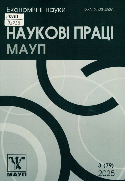 Наукові праці Міжрегіональної академії управління персоналом. Економічні науки = ScientificworksofInterregionalacademyofpersonnelmanagement. Series: Economicsciences : зб. наук. пр. / Засновник Міжрегіон. акад. упр. персоналом (Київ) ; гол. ред. О. І. Дацій. – Київ : МАУП; Київ ; Одеса : Гельветика, 2025. – Вип. 3 (79). – 240 с.