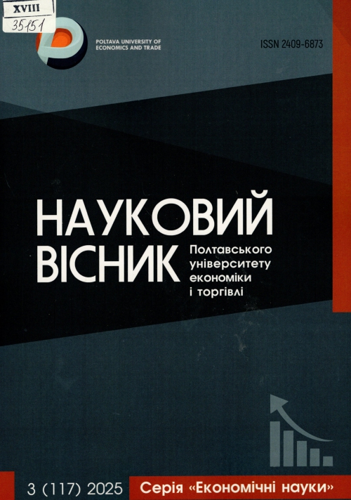 Науковий вісник Полтавського університету економіки і торгівлі : зб. / Засновник Полтав. ун-т економіки і торгівлі (ПУЕТ) ; гол. ред. Н. С. Педченко. – Полтава : ПУЕТ, Полтава ; Одеса : Гельветика, 2025. – Вип. 3 (117): Серія: Економічні науки. – 215 с.