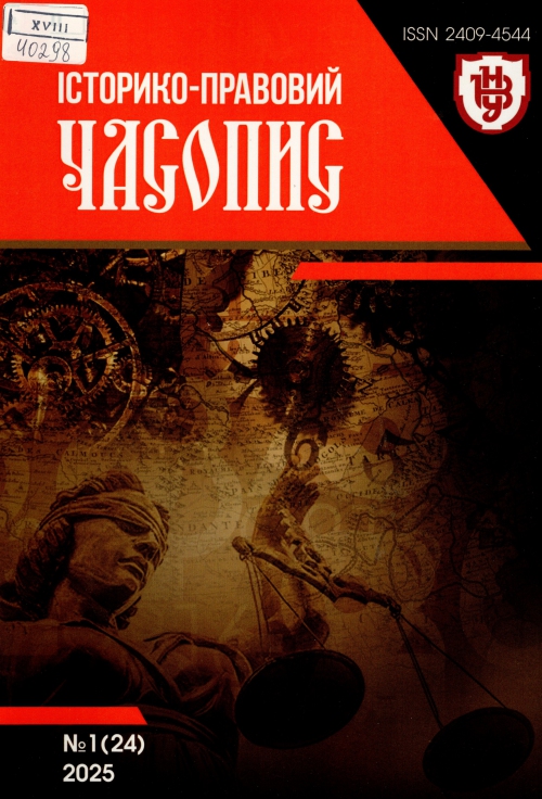 Історико-правовий часопис : журнал / Засновник Східноєвроп. нац. ун-т ім. Л. Українки ; гол. ред. Михайло Михайлович Яцишин. – Луцьк : СНУ ім. Лесі Українки, Луцьк ; Одеса : Гельветика, 2024. – № 1 (24). – 102 с.