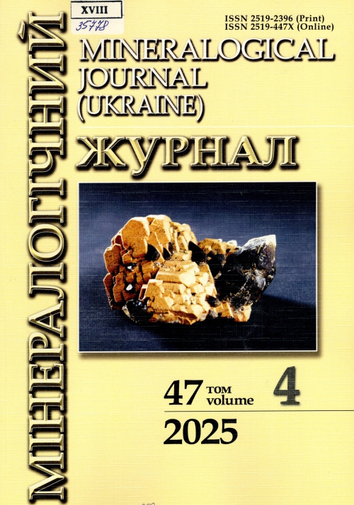 Мінералогічний журнал = Mineralogical journal (Ukraine) : наук.-теорет. журн. / Засновник НАН України. Ін-т геохімії, мінералогії та рудоутворення ім. М. П. Семененка ; гол. ред. О. М. Пономаренко. – Київ : Академперіодика, 2025. – Т. 47, № 4. – 90 с.