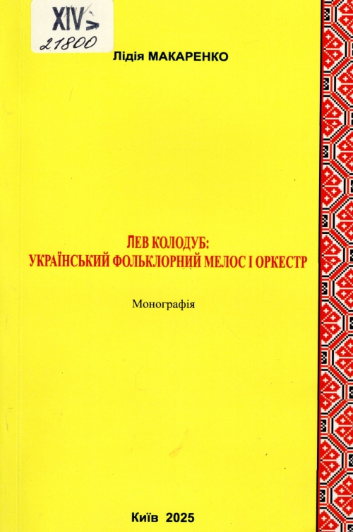Макаренко Л. П. Лев Колодуб: український фольклорний мелос і оркестр : монографія / Лідія Петрівна Макаренко ; Київ. нац. ун-т технологій та дизайну. – Київ : КНУТД, 2025. – 183 с. : ноти, фот.