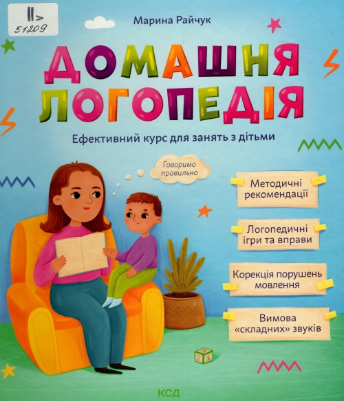 Райчук М. Домашня логопедія : ефективний курс для занять з дітьми : для роботи з дітьми дошк. віку / Марина Райчук. – Харків : Книжковий Клуб "Клуб Сімейного Дозвілля", 2024. – 127 с. : іл., фот.