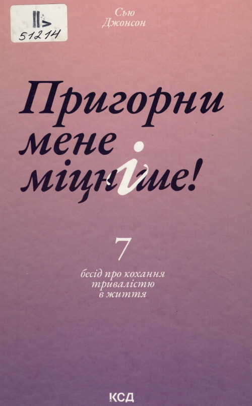 Джонсон Сью. Пригорни мене міцніше : 7 бесід про кохання тривалістю в життя : пер. с англ. / Сью Джонсон ; пер. Віра Кучменко. – Харків : Книжковий Клуб "Клуб Сімейного Дозвілля", 2024. – 285, [1] с.