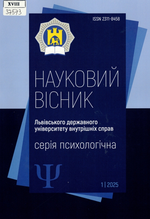 Науковий вісник Львівського державного університету внутрішніх справ. Серія психологічна : зб. наук. пр. / Засновник Львів. держ. ун-т внутрішніх справ ; гол. ред. Зоряна Ярославівна Ковальчук. – Львів : ЛДУВС, Львів : ЛьвДУВС ; Одеса : Гельветика, 2025. – Вип. 1 .– 103 с.