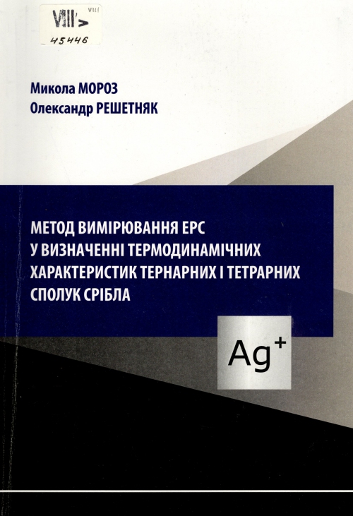 Мороз М. В. Метод вимірювання ЕРС у вязок із культурними ідеями епохи класицизму. изначенні термодинамічних характеристик тернарних і тетрарних сполук срібла : монографія / Микола Володимирович Мороз, Олександр Володимирович Решетняк ; Львів. нац. ун-т ім. І. Франка, Нац. ун-т водного госп-ва та природокористування. – Львів : ЛНУ ім. І. Франка, 2024. – 258 с. : рис., табл.